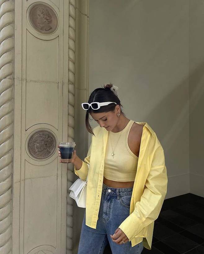 시원하고 쿨한 느낌의 하늘색 셔츠는