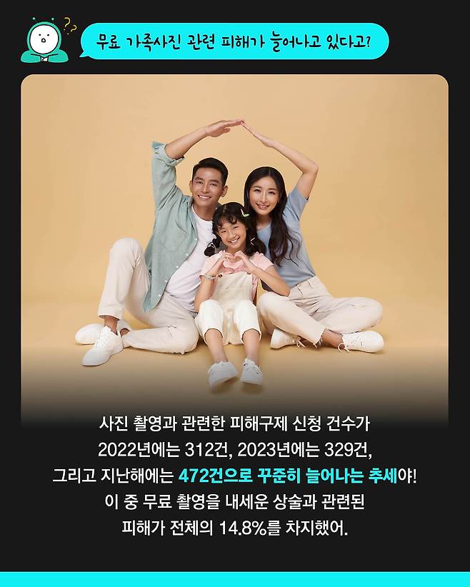 사진 촬영과 관련한 피해구제 신청 건수가 2022년에는 312건, 2023년에는 329건, 그리고 지난해에는 472건으로 꾸준히 늘어나는 추세입니다.