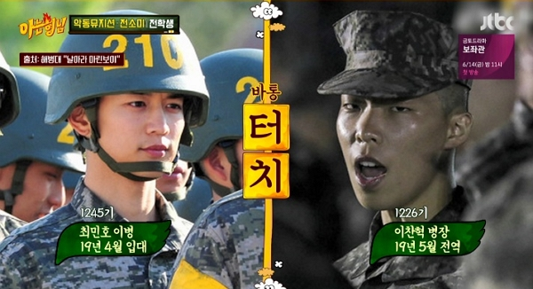 영화 '장사리: 잊혀진 영웅들'에서 군인 역할을 맡아 한겨울에 입수와 비를 맞아가며 촬영해봤기에 '해병대도 이것보단 쉽겠다'라는 마음으로 입대했다는 민호. 하지만 두 번째 되는 날 바로 후회했지만 포기할 순 없었다고.