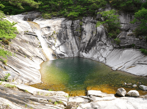 계곡을 따라 바위들이 넓게 펼쳐져 있어 돗자리나 돗자리를 깔고 쉬기에도 좋고, 물이 깊지 않아 아이들과 함께 방문하기에도 안전한 편인데요. 특히 햇살이 비추지 않는 숲 속 깊은 곳에서는 여름 한복판에도 서늘한 기운을 느낄 수 있습니다. 이름처럼 바위 위로 흐르는 물이 둥글게 모이는 모습도 인상적입니다.