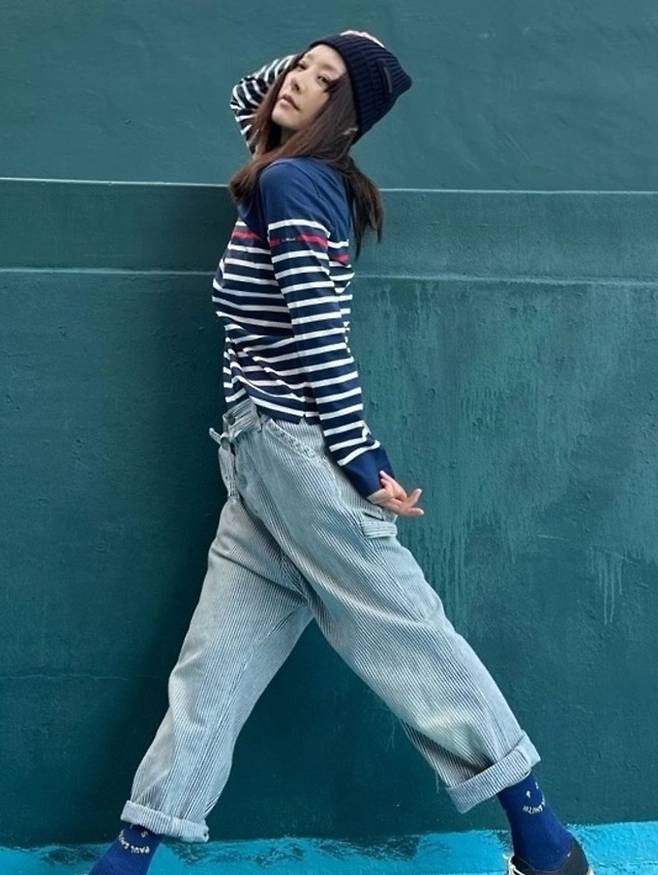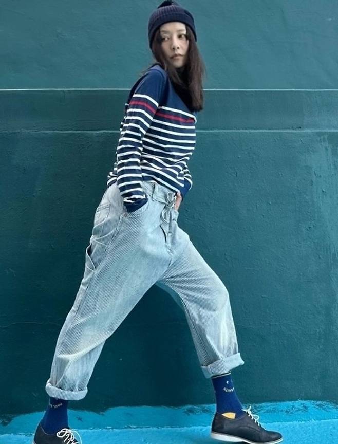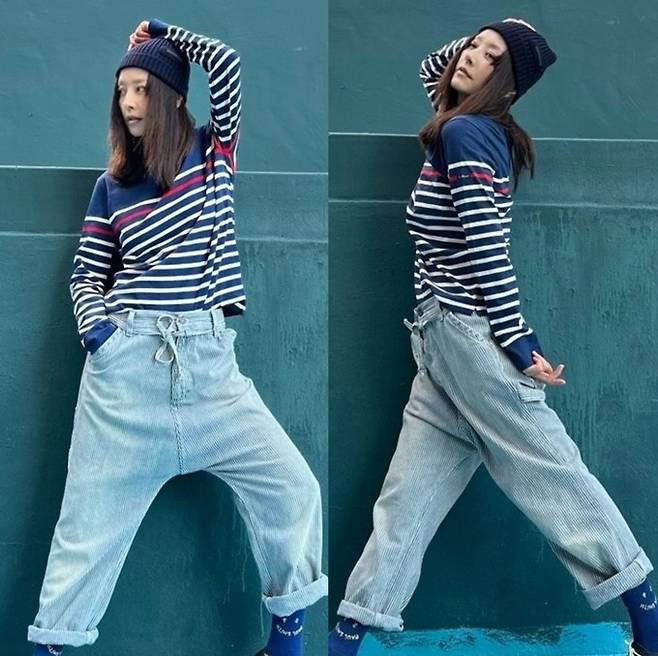 공개한 사진에서 서정희는 네이비와 화이트의 스트라이프 티셔츠에 롤업된 와이드 핏 골덴 팬츠를 입고 긴 생머리에 비니를 매치한 힙한 스트릿룩으로 10대 못지않은 유연성과 포즈로 시선을 강탈했다.