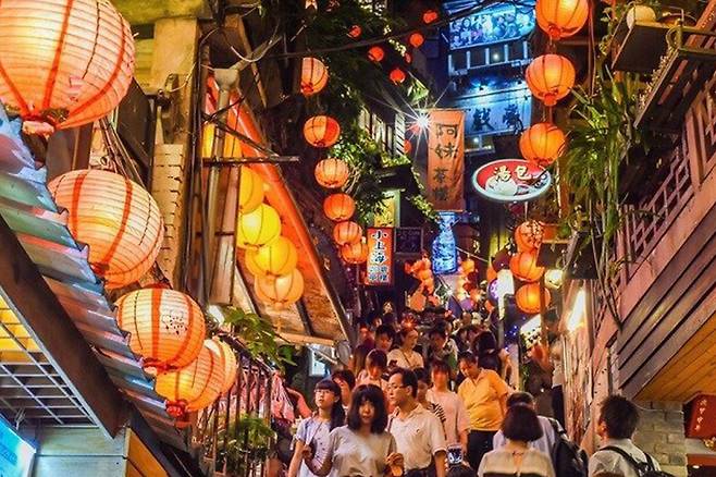 애니메이션 센과 치히로의 행방불명의 배경으로 알려진 동양적인 아름다움과 홍등이 밝힌 이국적인 풍경.