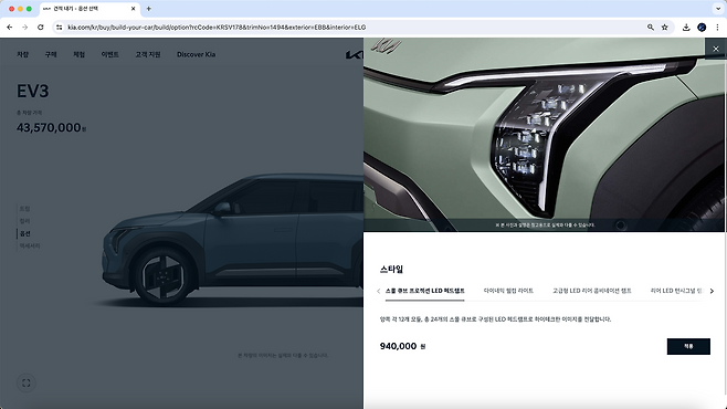 스타일은 취향, 컴포트는 필요의 부분이 아닐까 생각해요. 신차여도 스몰 큐브 프로젝션 LED 없어도 괜찮다면 제외. 혼자 타더라도 차에서 이것저것 하는 게 많고 보내는 시간이 많다면, 특히 정기적인 동승자가 있다면 컴포트는 필요할지도 모르겠네요. 드라이브 와이즈는 선택 품목 중 1순위인데 EV3는 기본 등급부터 ADAS 구성이 괜찮아서 여기에 투자할 돈을 스타일이나 컴포트로 돌려서 전반적인 완성도나 만족도를 높이는 게 나을 것 같아요.