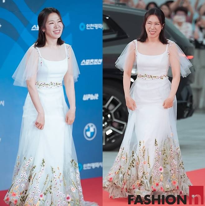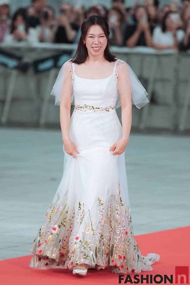 이날 염혜란은 순백의 실크 원단 위에 정교하게 야생화 자수가 더해진 플로럴 드레스룩으로 맏언니 같은 밝고 따뜻한 에너지를 발산했다.