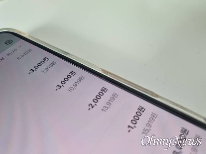 "여기 7시 6분에 2천 원 찍혔잖아. 근데 8시 14분에 또 2천 원 찍혀있어. 그런데 오늘 뿐만이 아니야. 일주일 동안 계속 비슷한 시간대에 이체가 됐어."