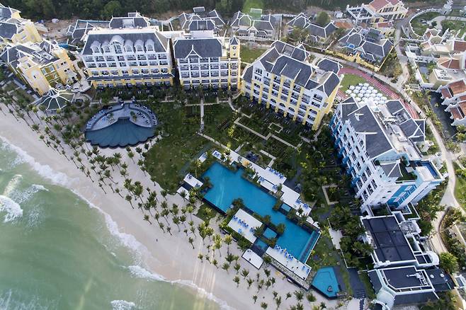 JW 메리어트 푸꾸옥, 빈펄 리조트, 퓨전 리조트, 노보텔 푸꾸옥 등 세계적인 체인 호텔이 해변을 따라 늘어섬.