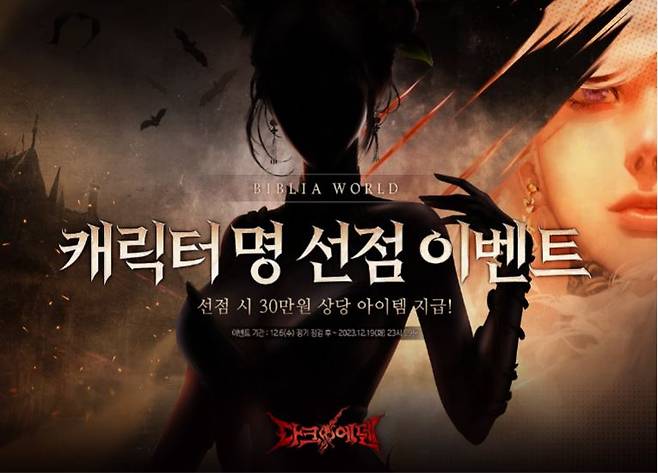 소프톤엔터테인먼트는 MMORPG '다크에덴'의 서비스 21주년을 맞이해 신규 월드 '비블리아' 캐릭터명 선점 이벤트를 시작한다고 6일 밝혔다.