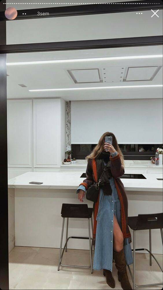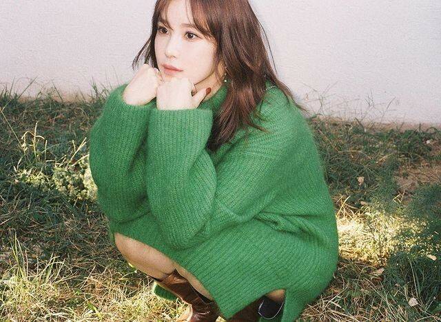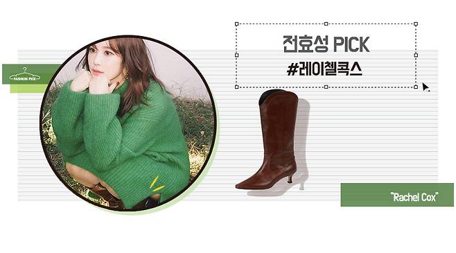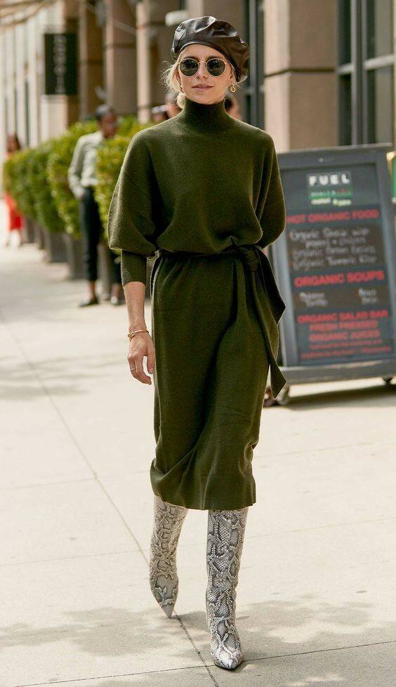 초록색 니트 원피스에 레이첼콕스 부츠를 코디!