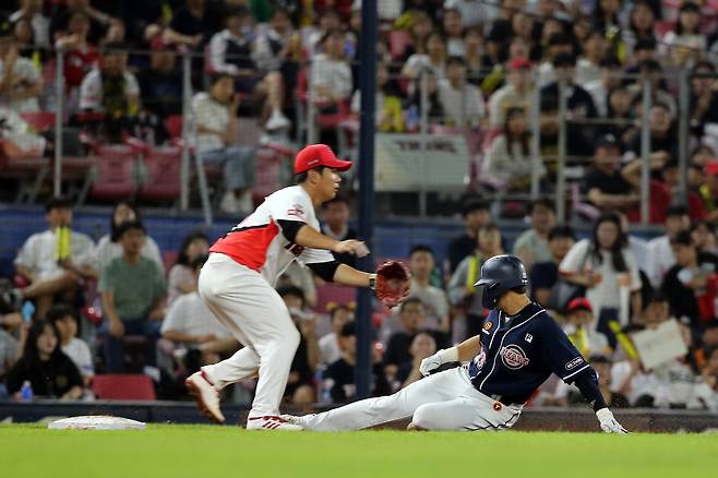 지난해 기준으로 보면 KBO리그 10개구단 타자가 기록한 안타는 총 1만3929개였다. 그중 단타는 9881개(70.9%), 2루타는 2381개(17.1%), 홈런은 1438개(10.3%) 터졌지만 3루타는 229개(1.6%)에 불과했다. 안타 100개가 나오면 그중 홈런은 10개 가량 볼 수 있지만, 3루타는 1~2개 볼까말까한 수준이다. 역으로 생각하면 그만큼 한 경기에 3루타를 치거나 3루타를 구경하는 것은 희소성의 가치가 있다는 의미다.