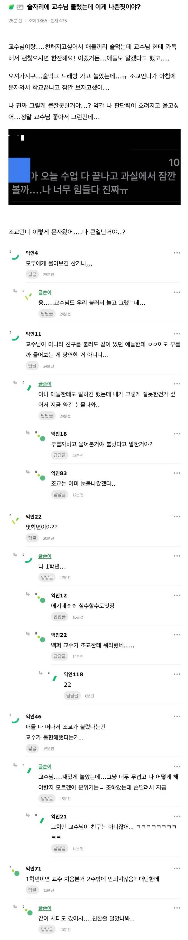 술자리에 교수님을 부른 새내기