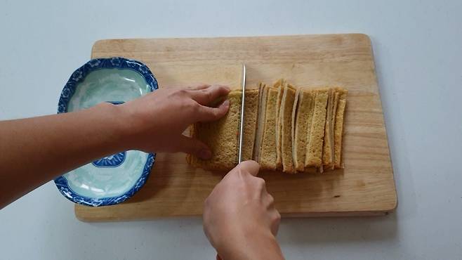 먹기 좋게 반으로 한 번 더 잘라주세요