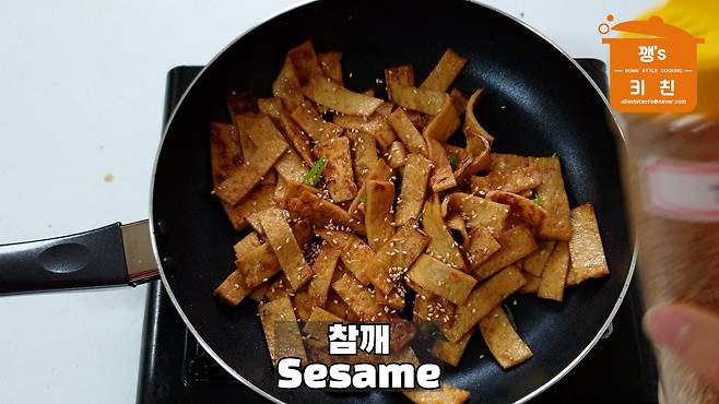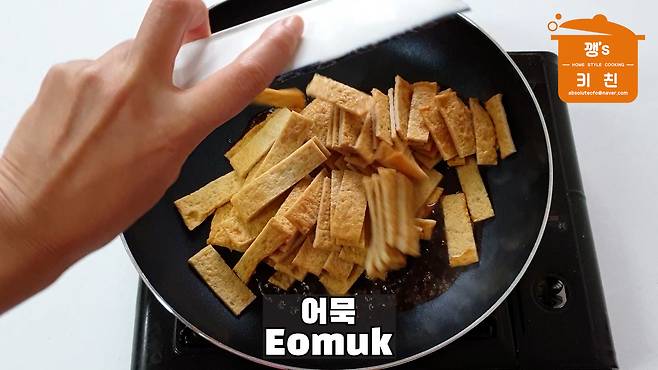 4. 간장이 끓으면 어묵 넣고 볶아주기