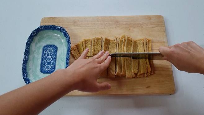 먹기 좋게 반으로 한 번 더 잘라주세요