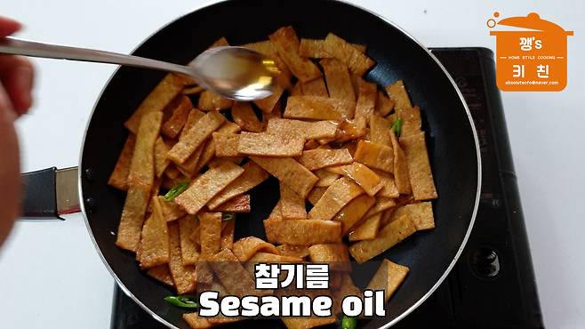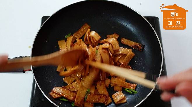 4. 간장이 끓으면 어묵 넣고 볶아주기