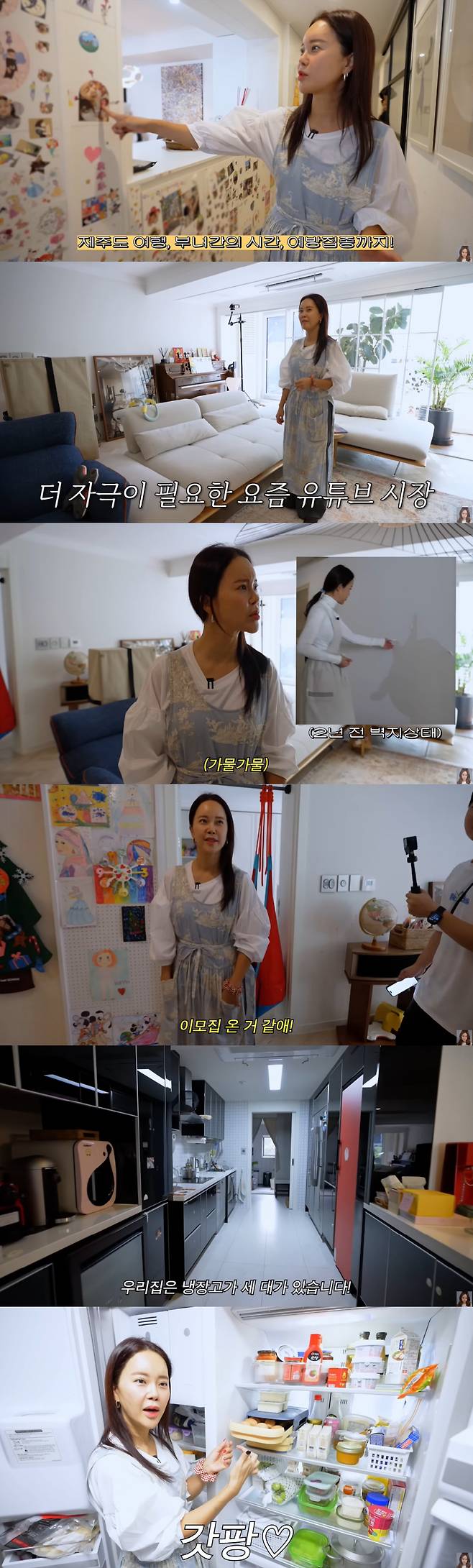 과거에도 집 공개를 했던 백지영은 "바뀐 건 별로 없다"며 집 안 구석구석을 소개했다. 집에 들어서면 가장 먼저 눈에 띄는 딸 하임이의 자유 게시판에는 제주 여행, 돌잔치, 첫 예방 접종 사진 등이 붙어 있었다. 이에 대해 백지영은 "우리의 역사가 다 담겨 있다"고 설명했다.