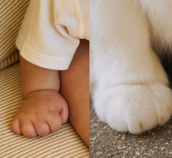 이번에는 발이 아니라 마치 고양이의 발을 연상케 하는 통통한 아들의 손이었습니다. 손예진은 해당 사진을 공개하며 별도의 멘트 없이 '🙊🙉🙈'의 이모티콘을 공개하며 아들에 대한 애정을 드러냈는데요.