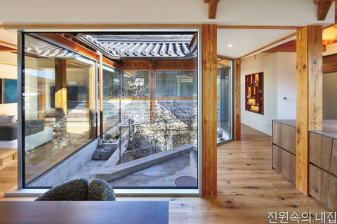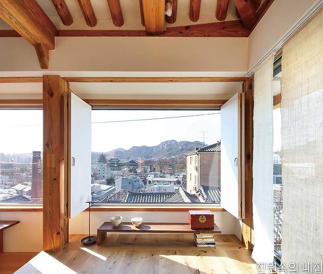 해외에서 돌아온 부부는 학생 시절 매료된 한옥 마을에서 새로운 삶의 터전이 될 집을 찾았다. 서울의 풍경을 한눈에 담는 창과 깊은 중정 마당, 한옥과 새로운 생활양식이 서로 조화를 이루는 리모델링 사례다.
