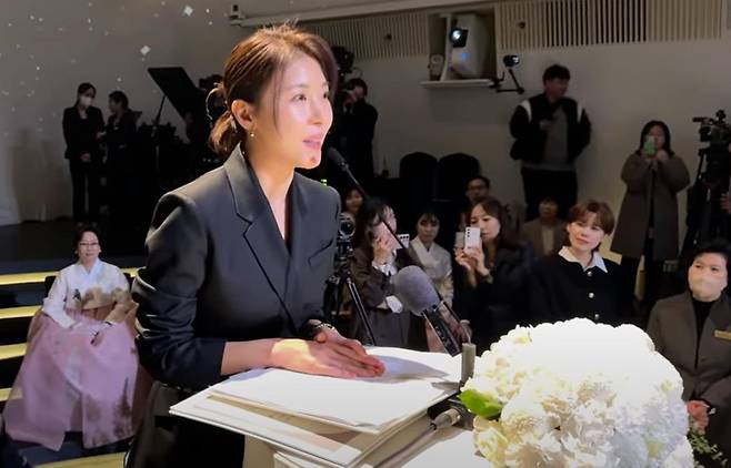 본의 아니게 사회를 맡은 하지원은 본인도 결혼 생활을 하지못해 어떤 축하의 말을 전할까 고민했다고 말하며