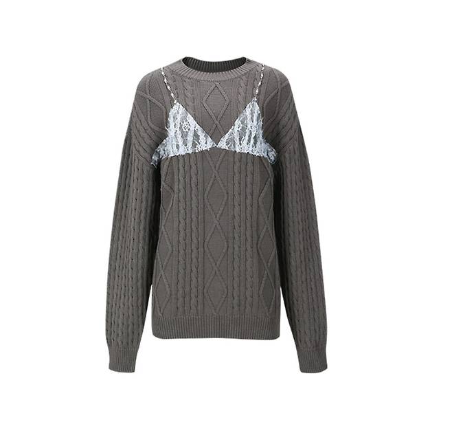 이 의상은 서울 기반의 스트리트 패션 브랜드 ‘앤더슨 벨(Anderson Bell)’의 최신 컬렉션에서 찾아볼 수 있는 캐주얼하면서도 평범하지 않은 니트 스웨터입니다.