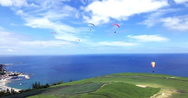 포항 칠포해수욕장이 한눈에 내려다보이는 곤륜산 활공장은 힘든 등산이 아깝지 않을 만큼 압도적인 풍경을 자랑하는 뷰 맛집이에요.