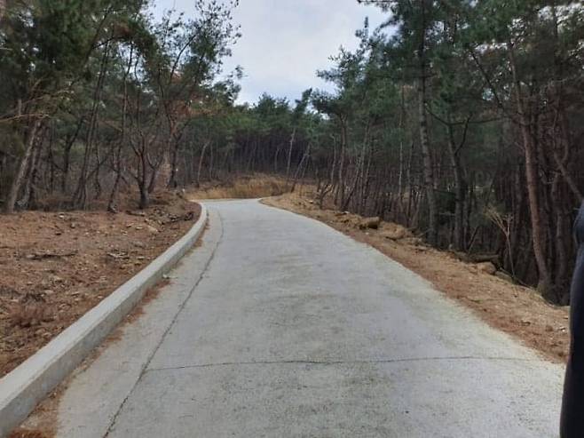 정상까지는 차량 진입이 불가능하며, 입구 주차장에서부터 약 20분 정도 가파른 포장도로를 걸어서 올라가야 합니다.