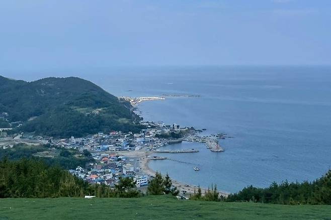 정상에 도착하면 시야를 가리는 장애물 없이 180도로 펼쳐진 동해 바다의 수평선을 마주하게 됩니다.