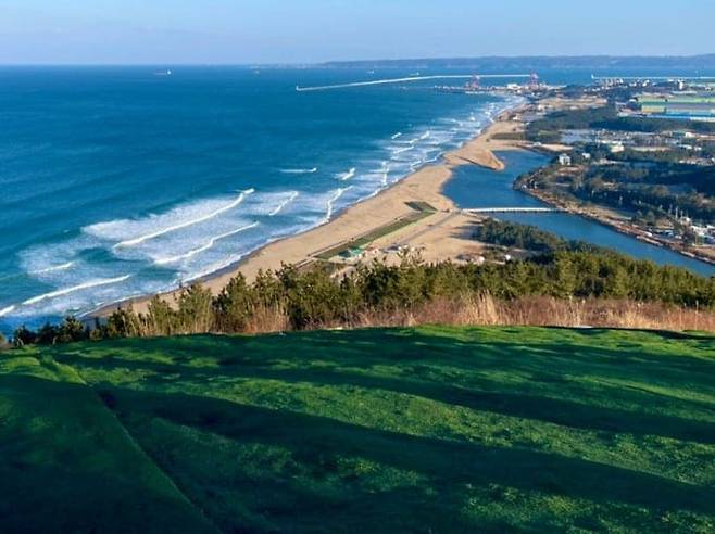 발아래로는 칠포해수욕장의 고운 백사장과 하얗게 부서지는 파도가 그림처럼 어우러져 장관을 이뤄요.