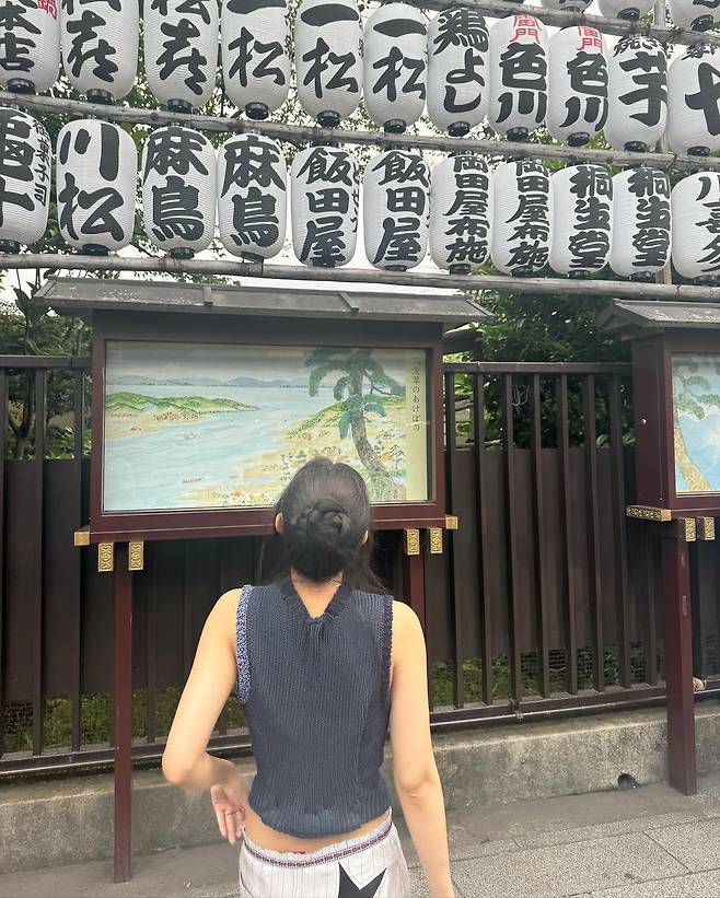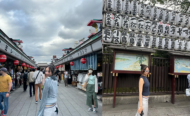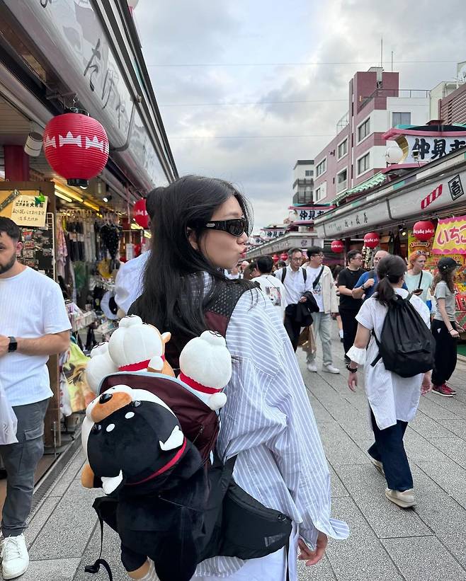 사진 속 제니는 블랙 크롭 민소매티와 스트라이프 롱치마를 입고 시스루 느낌의 바람막이를 입어 남다른 패션 감각으로 일본여행을 즐겼다.