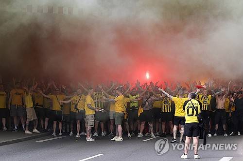 epa11312924 Dortmund fans arrive for the UEFA Champions League semi final, 1st leg match between Borussia Dortmund and Paris Saint-Germain in Dortmund, Germany, 01 May 2024. EPA/CHRISTOPHER NEUNDORF
