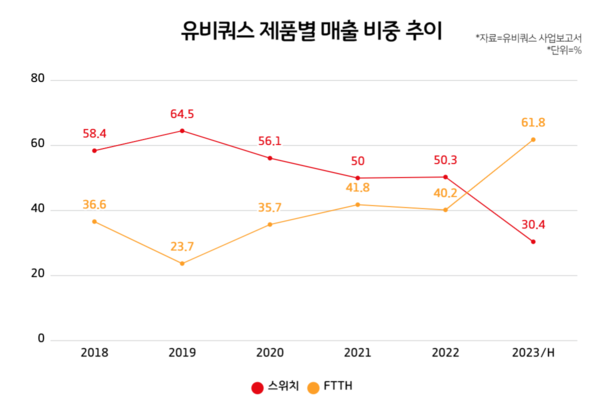 유비쿼스 관계자는 “FTTH가 기본적으로 단가가 높고 마진이 좋은 상품군”이라며 “FTTH 매출 비중 확대가 실적 상승에 기여했다”고 설명했다.