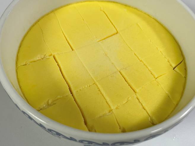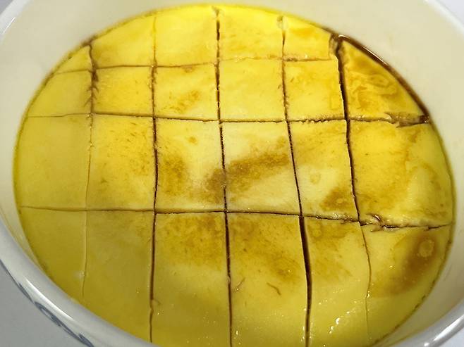 계란찜에 칼집을 내주면 모양도 예쁘고 떠먹기도 훨씬 수월해요.