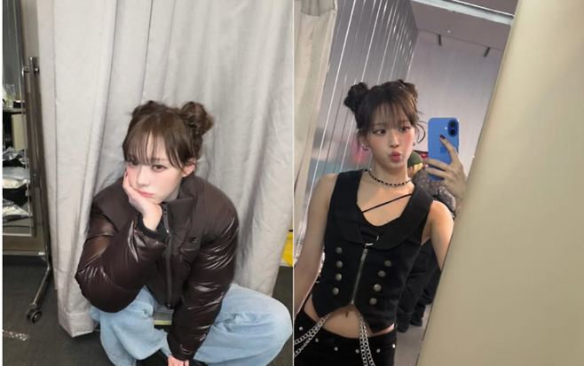 - '안추워?' 김채원, 직각 어깨와 등 라인으로 완성한 힙한 겨울룩 - MHN스포츠 / MHN Sports