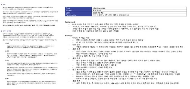 그래서 제가 일주일간 그 회사에 출근하듯 다니고, 현재 시스템 개요, 각 시스템의 결함, 해결 방안, 개발 공수와 견적 등을 자세히 정리했어요. 회사가 어디서 막혀 있는지 한눈에 알 수 있었고, 그렇게 회장님 보고용으로 드리니 곧바로 “그럼 네가 해결해 줘” 식으로 이어지더라고요.