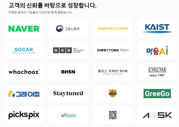 그러다 1년 반 동안 점점 고객사 규모가 커졌고, 이제는 쏘카, 네이버, 고용노동부, 컴포즈커피 같은 곳도 저희에게 의뢰를 주기 시작했습니다. 그러면서 비용도 억 단위로 올라갔죠.