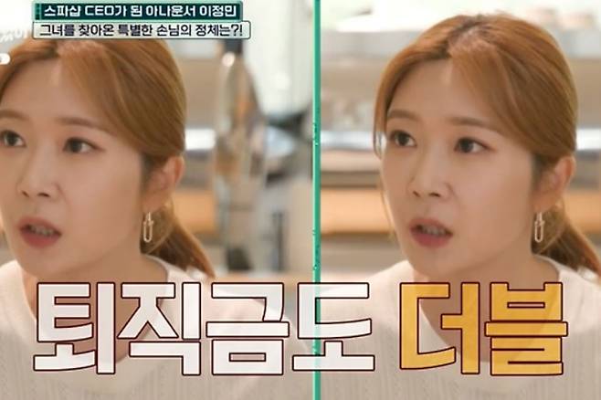 이정민은 "보통 후배들이 7~8년 근무하지 않냐, 난 곱하기해야 한다. 퇴직금도 두 배 정도 된다"라고 밝혔습니다.
