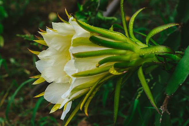 용과는 남아메리카 멕시코의 과일로 달빛선인장속의 식물이자 과일의 이름이에요. 생김새가 강렬해서 어디선가 본 적 있는 열매일거에요. 이 과일이 용과인 이유는 선인장 같은 생김새의 줄기가 덩굴처럼 축 쳐진 상태에서 분홍색 열매가 달리는데, 이 모습이 마치 여의주를 물고 승천하는 용을 닮았기 때문이라고 해요. 용과는 특이하게 달빛선인장속이라는 이름답게 꽃이 밤에 피어요. 그래서 나방, 박쥐 같은 야행성 동물들이 수정을 해준다고 해요.