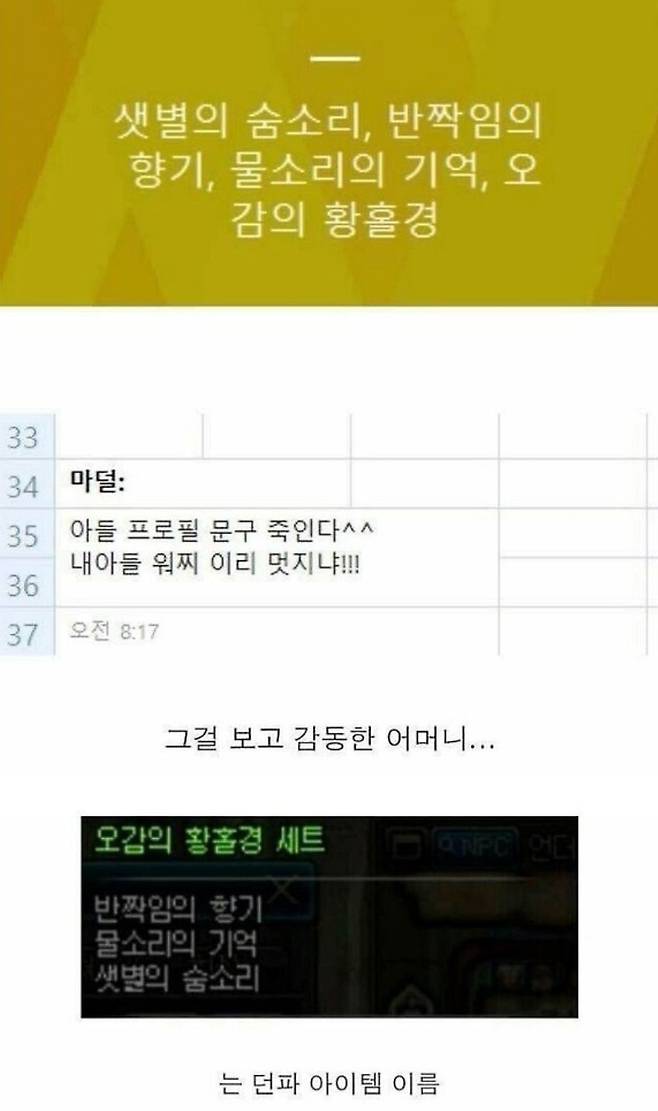 아들의 상태메세지에 감동한 엄마