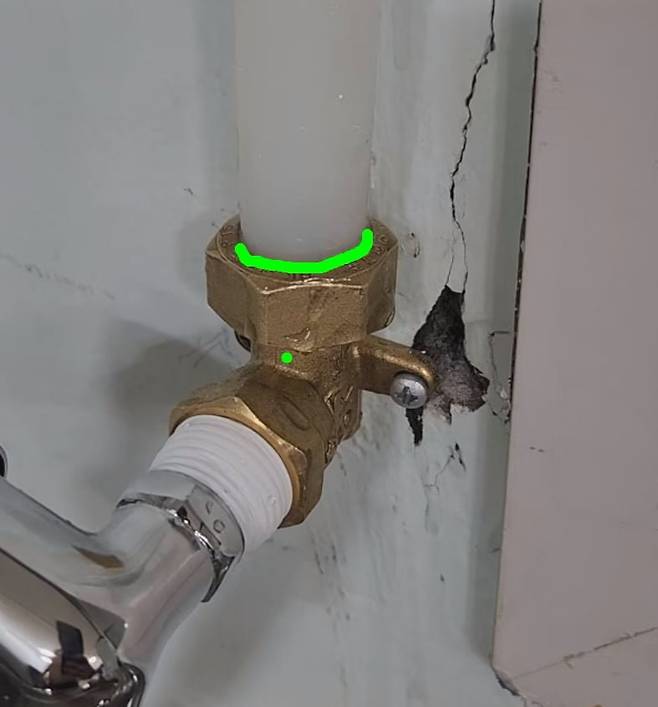 사진의 녹색부분으로 자꾸 물이 새어 나오네요.