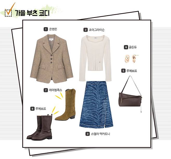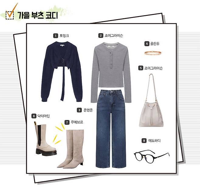 첫 번째 가을 부츠 코디는 가을의 모던한 무드를