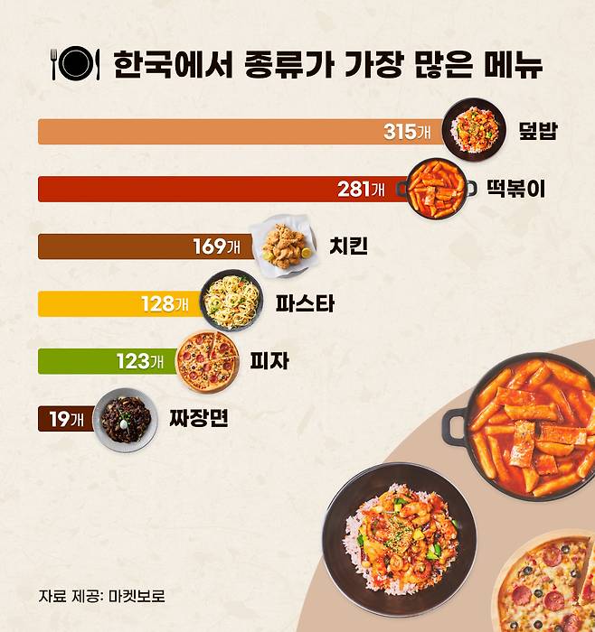 외식 메뉴로 즐겨 먹는 짜장면, 김밥, 탕, 찌개, 파스타 등 적게는 수 십 개, 많아야 몇 백 개일 거라는 예상과는 다른 결과다.