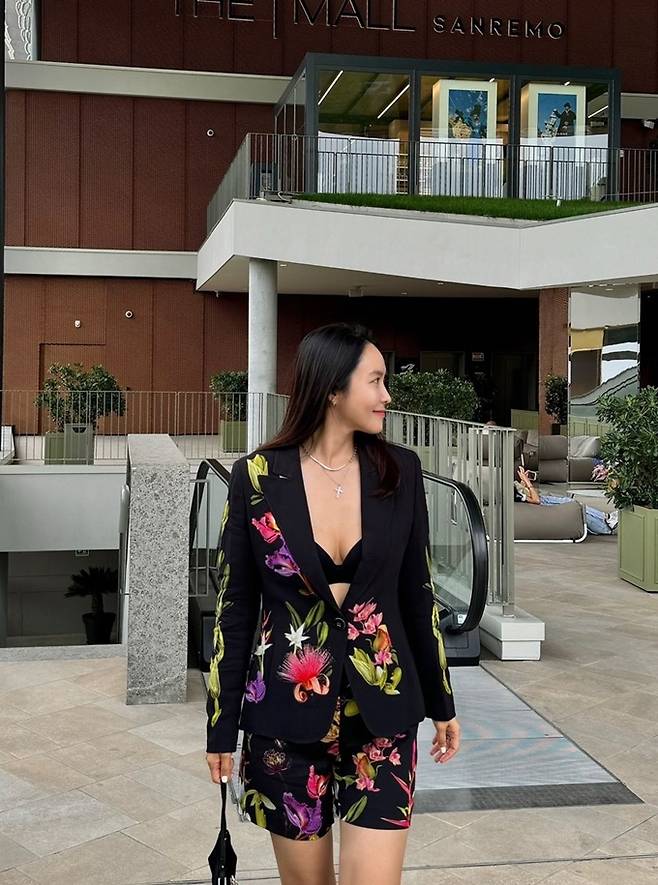 방송인 겸 아나운서 박지윤이 란제리 같은 꽃무늬 반바지 슈트룩으로 이태리 산레모의 시선을 사로잡았다.