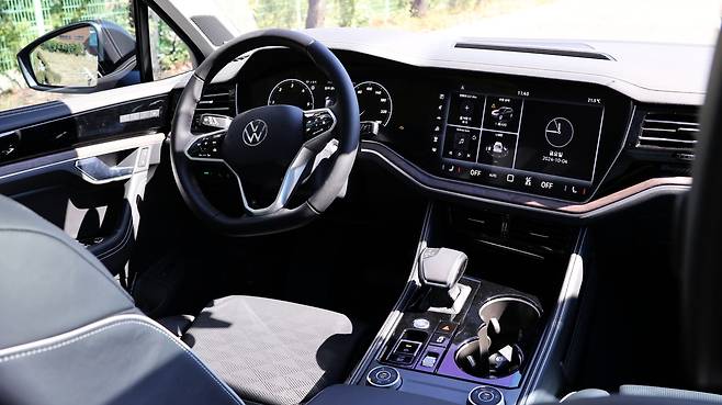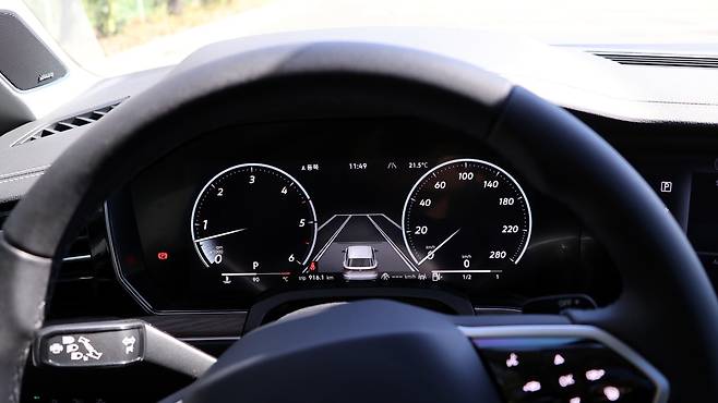 그래도 스포츠 모드에서 흥미롭게 느껴졌던 부분은 민첩한 코너링이다. 올 휠 스티어링 기능으로 타이트한 코너도 무리 없이 진입할 수 있다. 고속에서는 회피 기동에 대한 안정성을 높여주기도 하는데, 아무렴 적용 유무의 차이가 정말 큰 옵션이었다. 투아렉은 고속에서도 탁월한 안정성과 정숙성을 보여준다. 특히 묵직한 승차감이 인상적이며, 루프 로드 센서를 통해 충격을 더욱 자연스레 걸러줄 것이다. 기본적인 ADAS 장비는 기본, 차로 유지와 어댑티브 크루즈 컨트롤을 함께 켜면 '트래블 어시스트' 기능으로 전환되며 정차 후 재출발까지 주행을 돕는다.