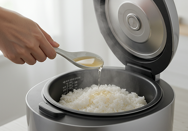 ★ 재료: 백미 1컵, 식초(사과·현미·흰식초) 1큰술, 물 적정량
