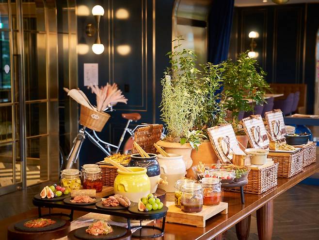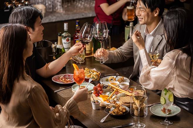 해당 프로모션은 호텔 2층에 위치한 조각보 바이츠 앤 와인 바에서 오후 6시부터 8시까지 2시간 한정으로 이용 가능하며, 가격은 1인 5만5000원(세금 포함)이다. 네이버 예약 ‘안다즈 서울 강남 조각보’를 통해 사전 예약 및 결제하면 10% 할인 혜택도 받을 수 있다.