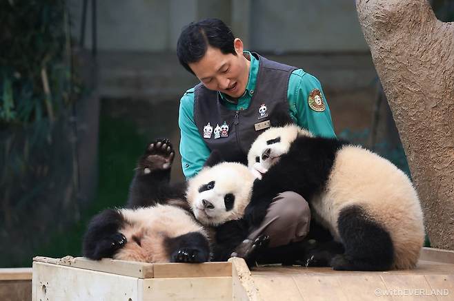 에버랜드 판다월드의 판다 가족 러바오, 아이바오, 루이바오, 후이바오는 사육사들의 애정을 듬뿍 받으며 지내고 있습니다. 판다월드의 사육사들은 판다들이 사람의 말을 이해하지 못한다는 걸 알면서도 늘 예쁜 말을 해주고, 쓰다듬어주고, 안아주는 등 사랑을 담아 바오 가족을 보살피는 모습을 보여주고 있는데요.