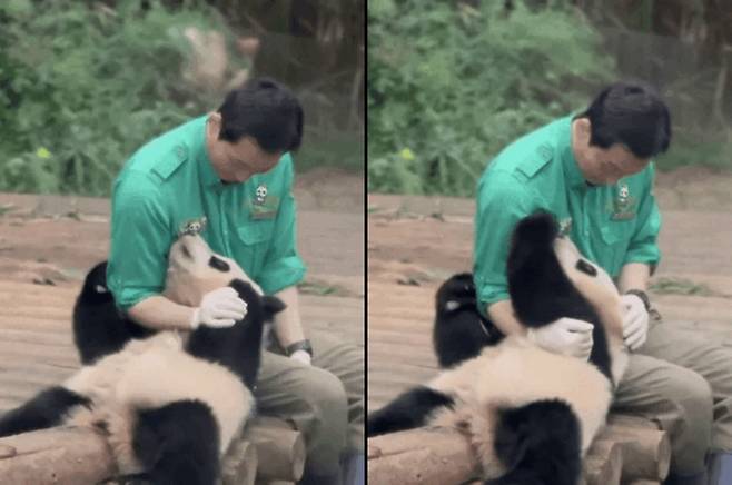 판다들도 자신을 아껴주는 사람을 알아보고 사육사들을 무척이나 따르고 있는데요. 최근 한 온라인 커뮤니티에 이를 잘 알 수 있는 따듯한 장면이 공개돼 사람들이 깜짝 놀랐습니다.