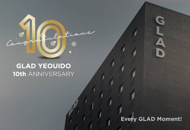 글래드 호텔 여의도가 개관 10주년을 맞이해 객실 상품 및 다양한 이벤트를 진행한다고 30일 밝혔다. 다음달 6일 10주년을 맞는 글래드 여의도는 'Every GLAD Moment!'를 슬로건으로 내세우며 국회 앞 도심 속 라이프스타일 호텔로 2014년 12월 개관했다.