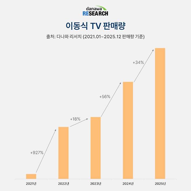 과거에는 화이트 컬러 제품이 대부분이었는데, 최근에는 블랙 컬러 제품도 여러 브랜드에서 나오고 있다. 인테리어 요소까지 더해지고 있는 이동식 TV, 2026년 역시 큰 무리 없이 상승 곡선을 그릴 것으로 예상된다.