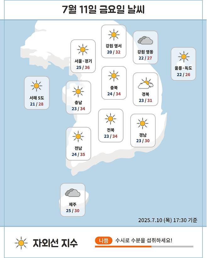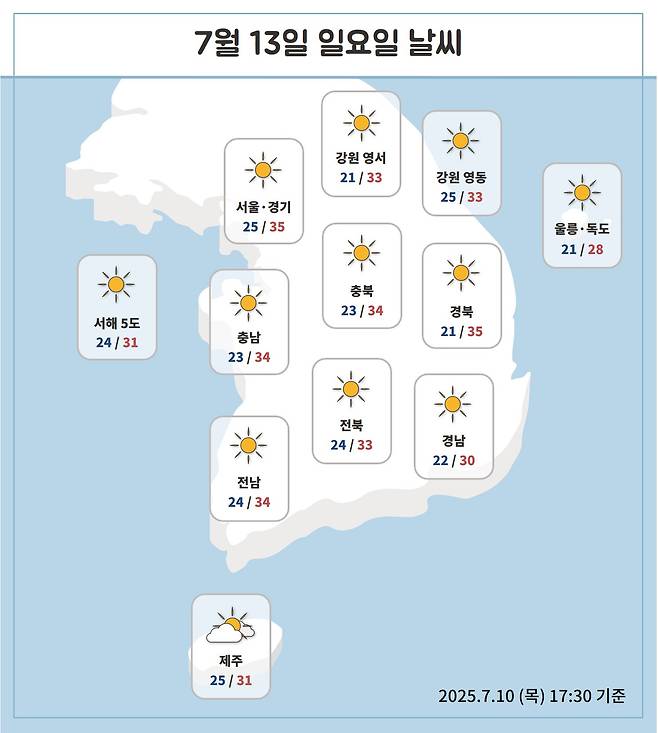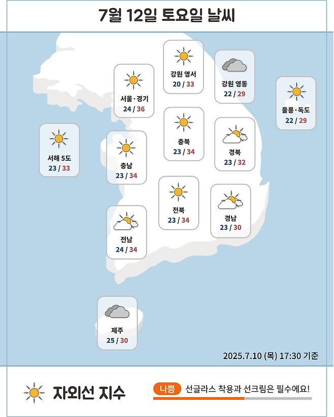 체감온도는 35℃ 안팎까지 올라