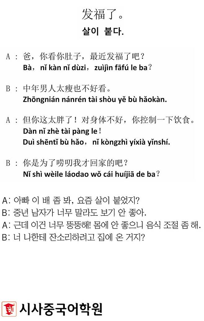 [시사중국어학원의 리얼 중국어 회화] 살이 붙다.